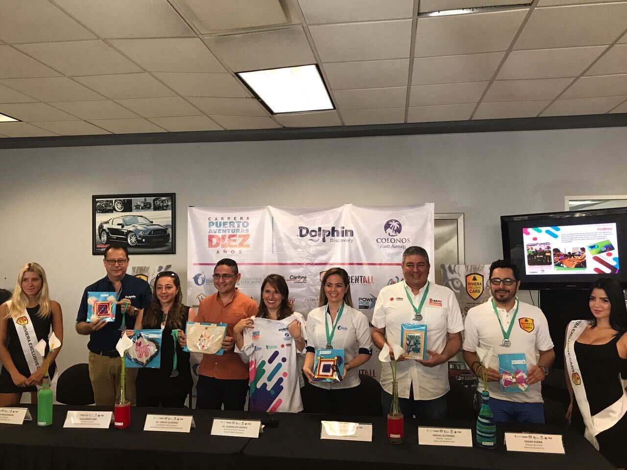 Cancún Quintana Roo a 09 de enero de 2018.- Fundación Dolphin Discovery y la Asociación de Colonos de Puerto Aventuras, anunciaron la décima edición de la carrera anual Dolphin Puerto Aventuras, acompañados por los representantes de la Fundación Cáritas de Quintana Roo,  Transformar Educando A.C. y Riviera Exclusive Cars.